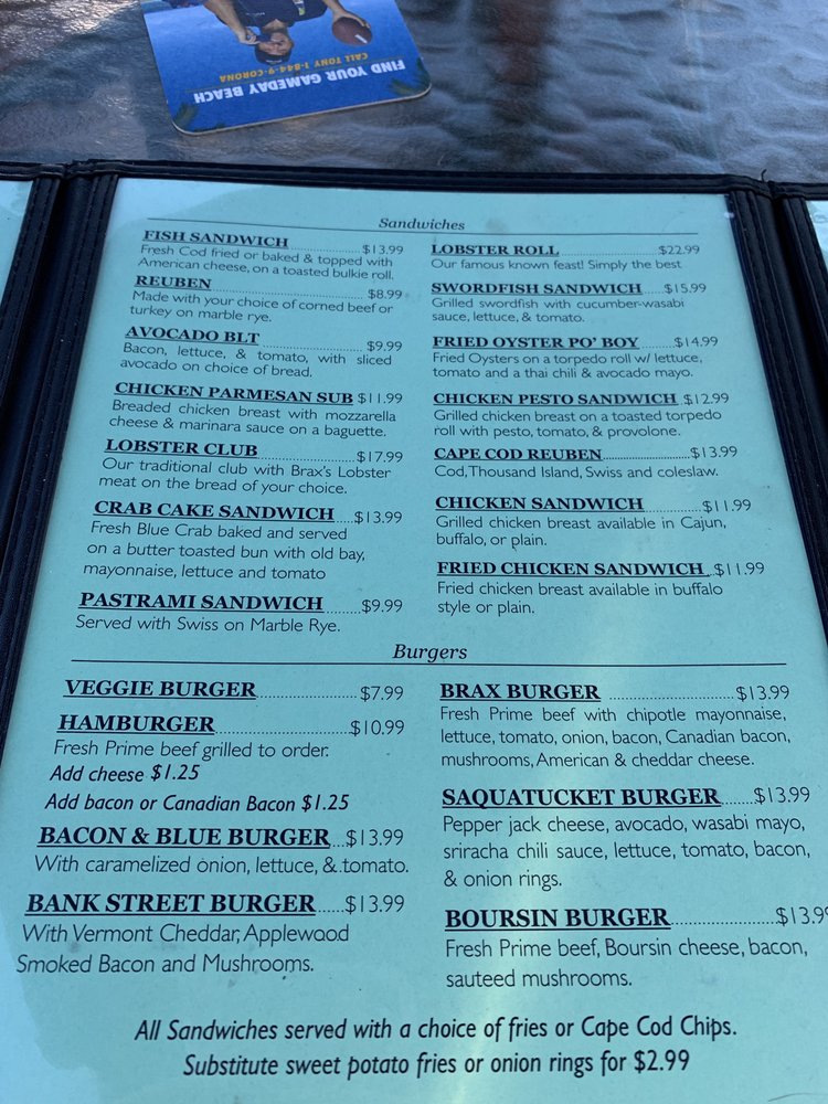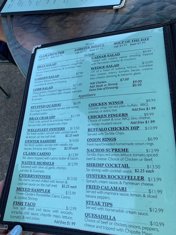 Located in Harwich Port, MA, Brax Landing Restaurant is a gem offering a diverse menu of seafood, burgers, and children's options. With a waterfront view, outdoor seating, and attentive staff, this restaurant is perfect for families, groups, or a romantic dinner. The menu boasts appetizers like Stuffed Quahog, Steak Tips, and Fried Calamari, setting the stage for a mouthwatering experience. For burger lovers, options like the Brax Burger with chipotle mayo and the Saquatucket Burger with wasabi mayo stand out. Customers rave about the French Onion Soup's flavorful broth, the perfectly cooked prime rib in the surf and turf dish, and the classic Lobster and oven-baked scrod. Whether indulging in seafood delicacies or savoring a hearty burger, Brax Landing Restaurant promises a delightful dining experience with exceptional service and stunning views.